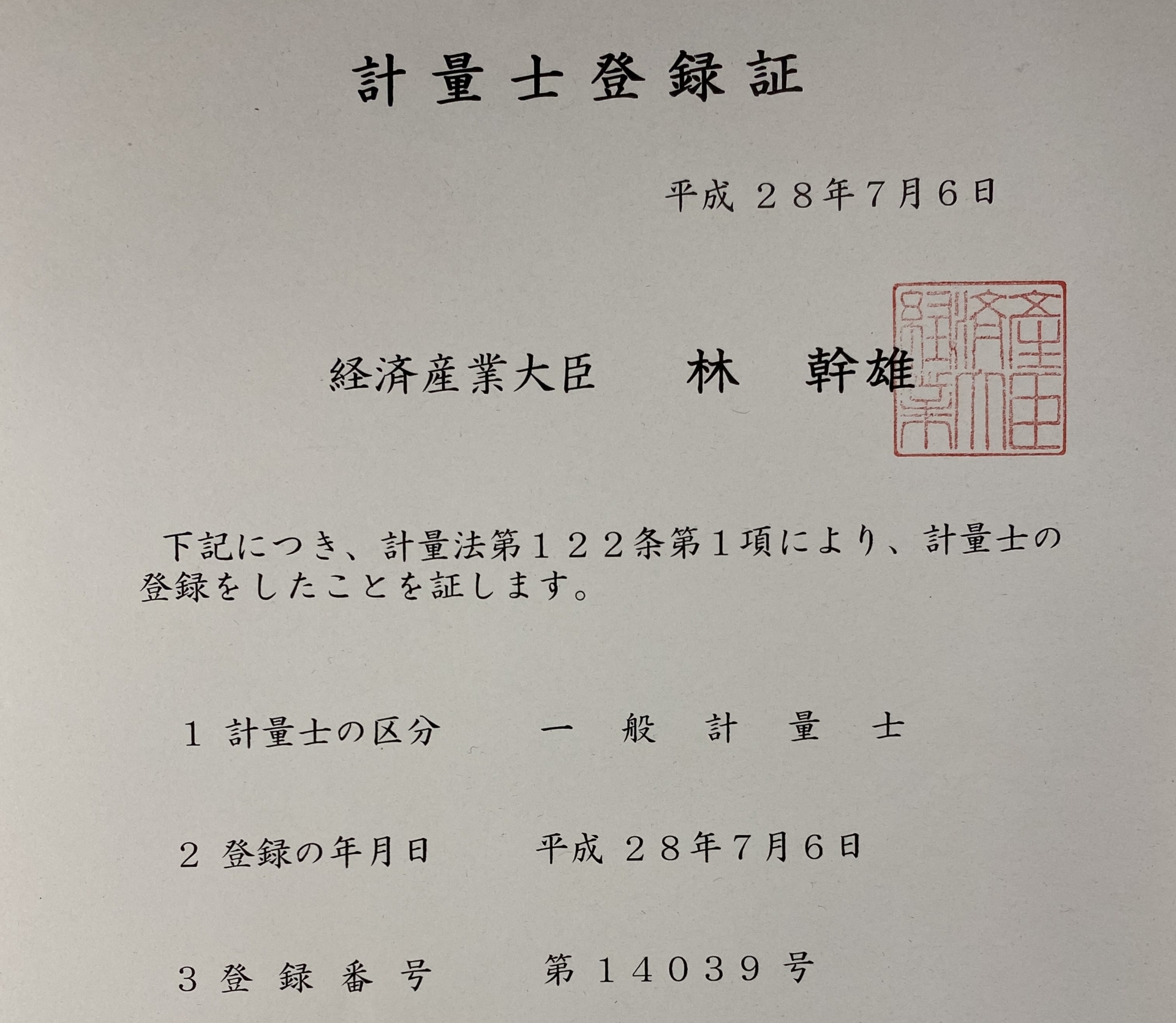 恵藤計器には社内に4名の計量士がおり、日々業務に活躍しています。